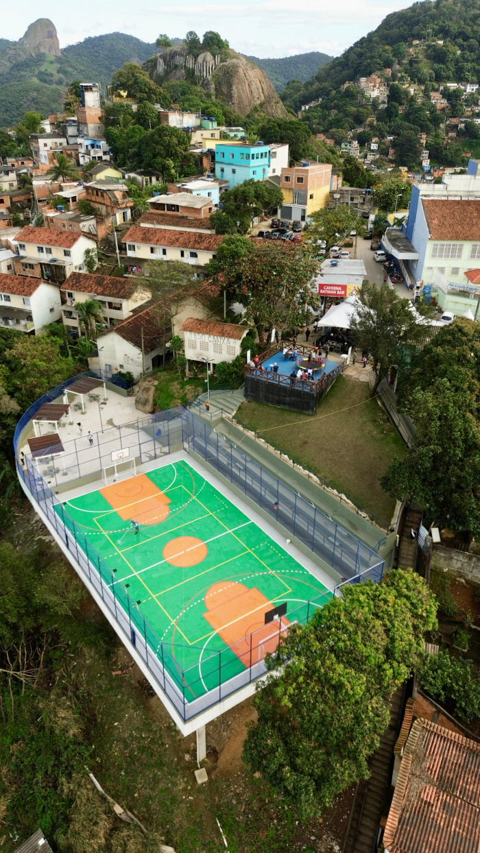 “A construção do complexo envolveu etapas de alta complexidade, como o corte de rochas para fundações, o transporte manual de materiais morro abaixo e a utilização de mais de 300 metros cúbicos de concreto e 32 toneladas de ferro na estrutura principal. O resultado é um espaço moderno, seguro e acolhedor, que passa a integrar o cotidiano da comunidade”, falou o secretário de Obras, Gustavo Perim.