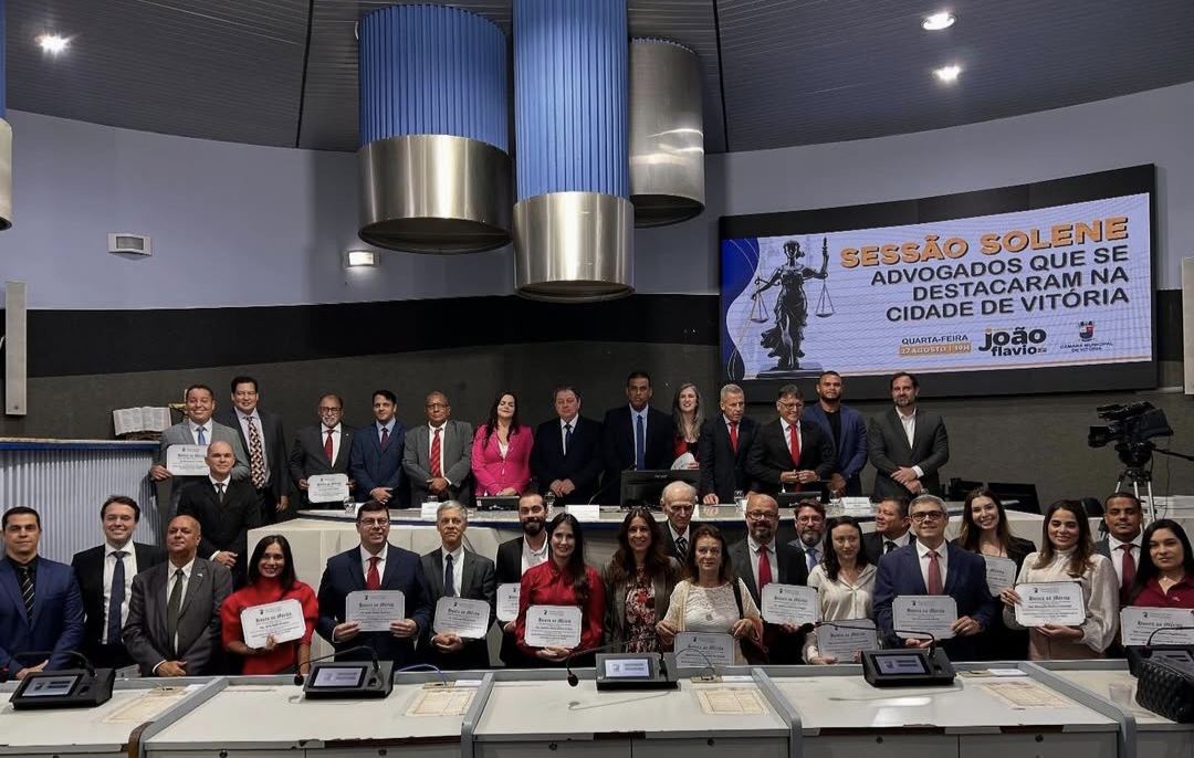 O Vereador de Vitória João Flávio e o advogado Dr. João Batista Dallapícolla Sampaio realizaram na noite da última quarta- feira( 27) uma emocionante Sessão Solene em homenagem aos advogados que se destacaram em Vitória .