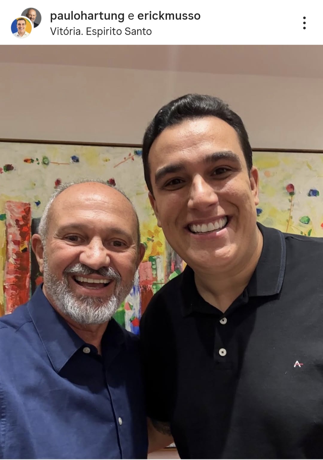 Paulo Hartung e Erick Musso tem uma boa parceria porque em 2017, Erick foi eleito Presidente da Assembleia Legislativa com apoio de Paulo Hartung em articulação política de Roberto Carneiro que foi Secretário de Paulo Hartung e hoje preside o Republicanos em São Paulo.