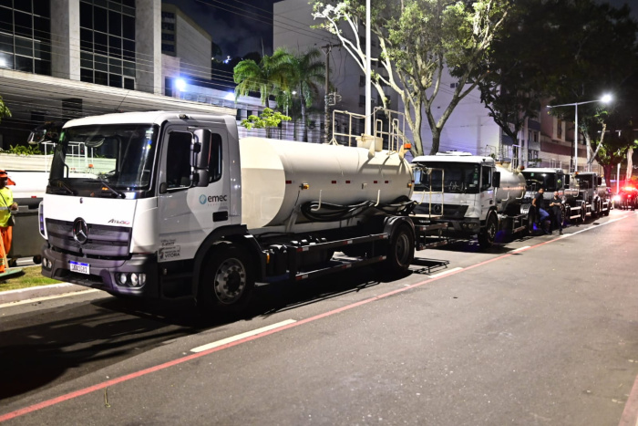 Além da lavagem das vias, os caminhões-pipa utilizaram desinfetante com essência de eucalipto, deixando não apenas o espaço higienizado, mas também perfumado. A ação reforça o compromisso da Prefeitura com a saúde pública, o bem-estar da população e a organização da cidade durante um dos períodos mais movimentados do ano.