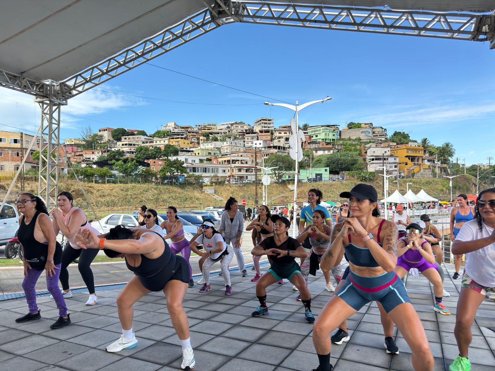 Além das aulas, a programação também contou com zumba, exercícios físicos, sorteio de brindes e uma estrutura preparada para acolher as participantes. Foram montadas tendas com frutas, picolé e água, ajudando na reposição de energia após as atividades e garantindo ainda mais conforto para quem participou da manhã de cuidados com a saúde.